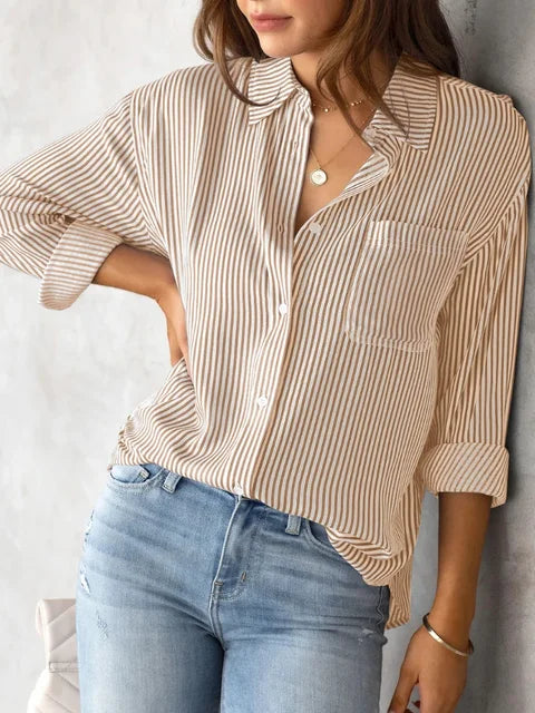 Moeiteloze stijl: Verhoog je casual garderobe met het tijdloze gestreepte ontwerp en de knoopdetails aan de voorkant, zodat je altijd een statement maakt.