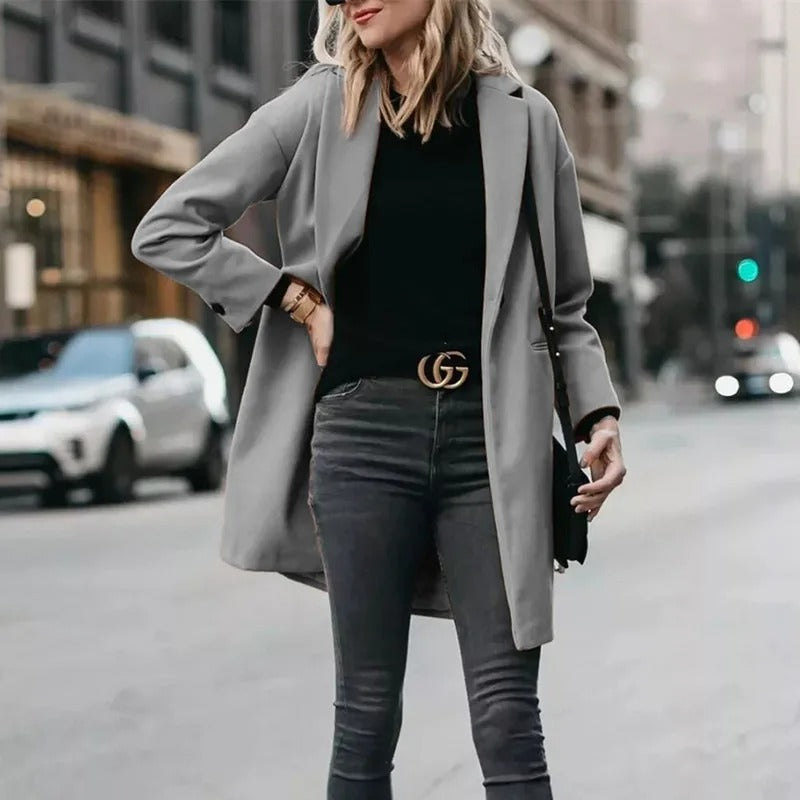 ✔ Moeiteloos chic: Elissa's losse pasvorm, reverskraag en mid-length ontwerp voegen moeiteloos een vleugje verfijning toe aan je look en maken van elk moment een fashion statement.
