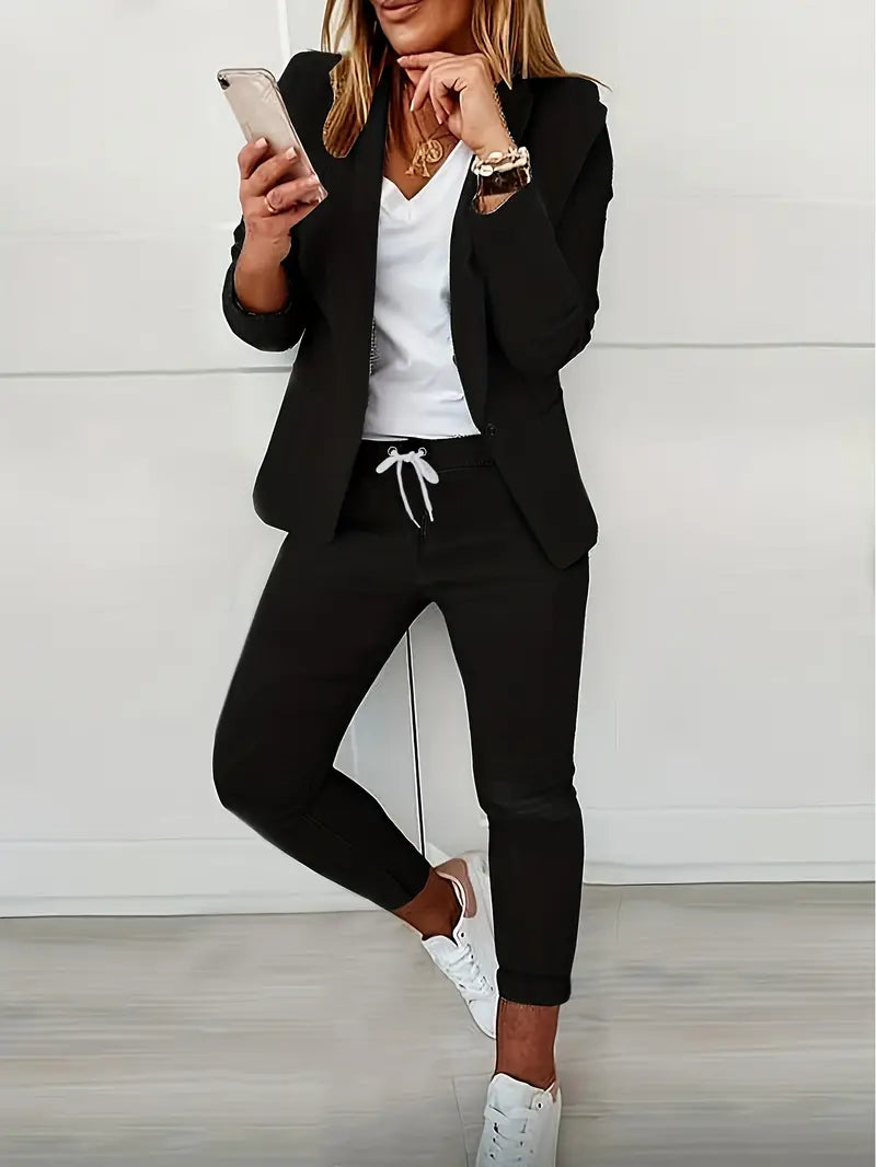 ✔ Flatteuze pasvorm: De broek met hoge taille en de getailleerde blazer accentueren je figuur voor een zelfverzekerde look.