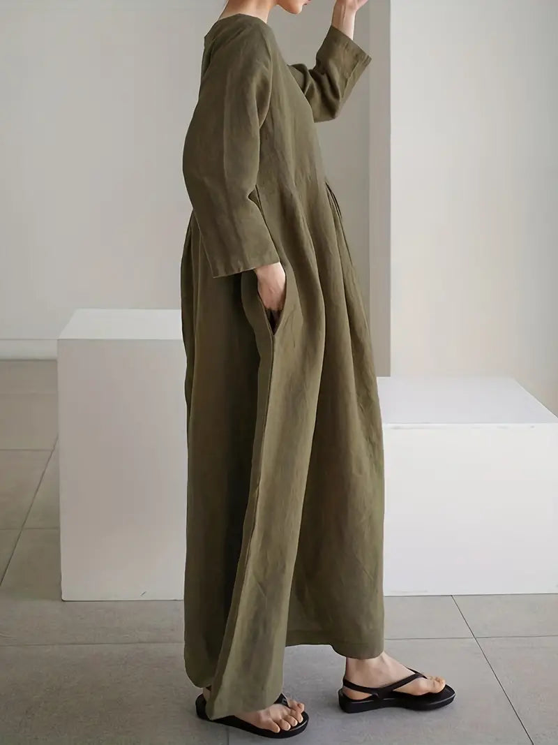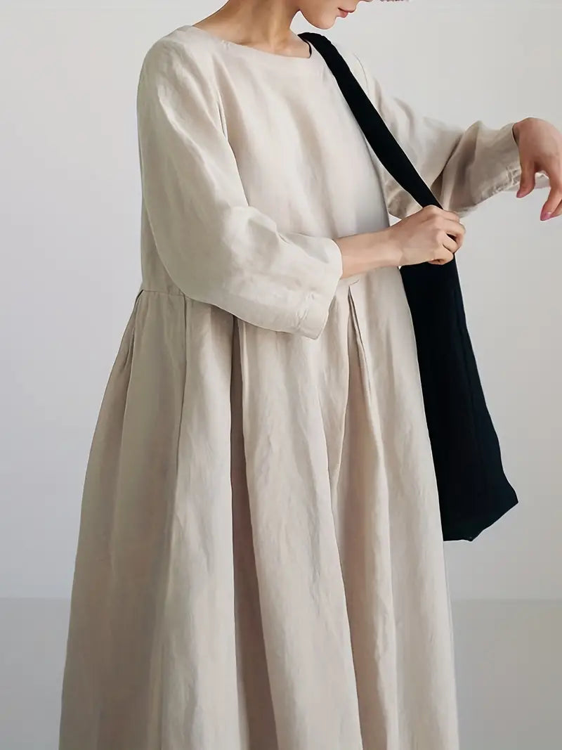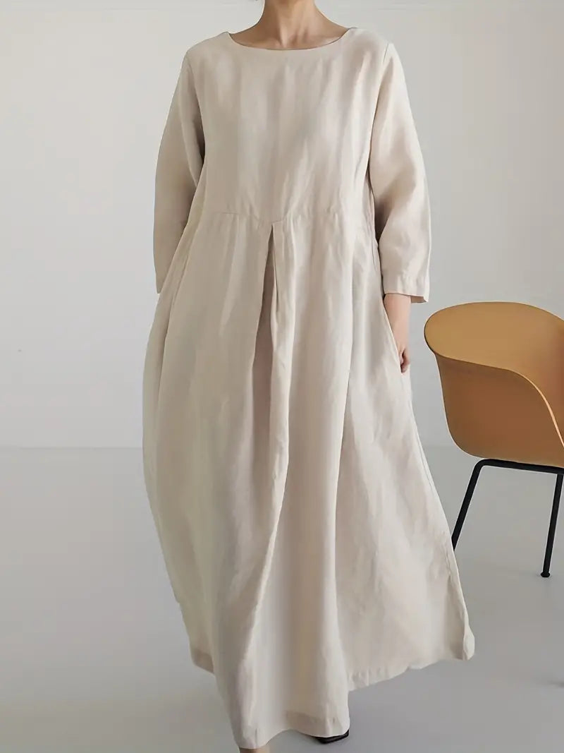 Maak kennis met onze Meike - Elegantejurk met geplooide zakken, de ultieme oplossing voor je garderobeproblemen.