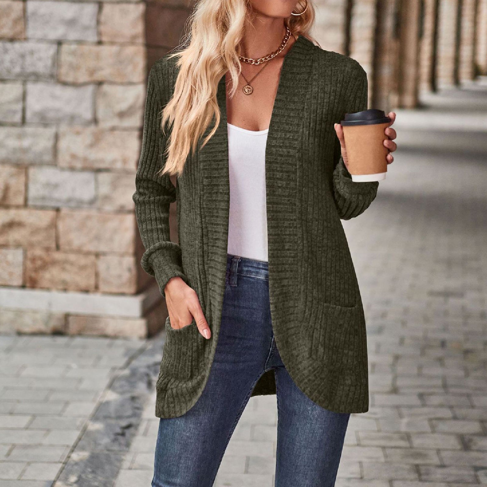 Het effen vest met open voorkant hult je moeiteloos in warmte en biedt de perfecte mix van casual lange mouwen en een drop-shoulder loper voor een trendy look.